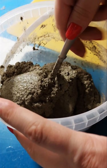 Džiovinimas ir apdaila: laukiu kol betonas sustings ir galėsiu išimti iš formos, po to šlifuoju ir užtepu viršutinį sluoksnį, kad apsaugočiau nuo byrėjimo.